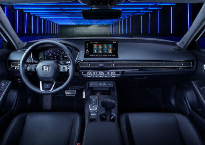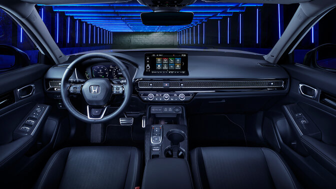 Helt nya Civic e:HEV, som lanseras hösten 2022, är en sportig självladdande fullhybrid-halvkombi där Civics legendariska dynamik, design och teknik kompletteras med spännande, elektrifierad kraft.